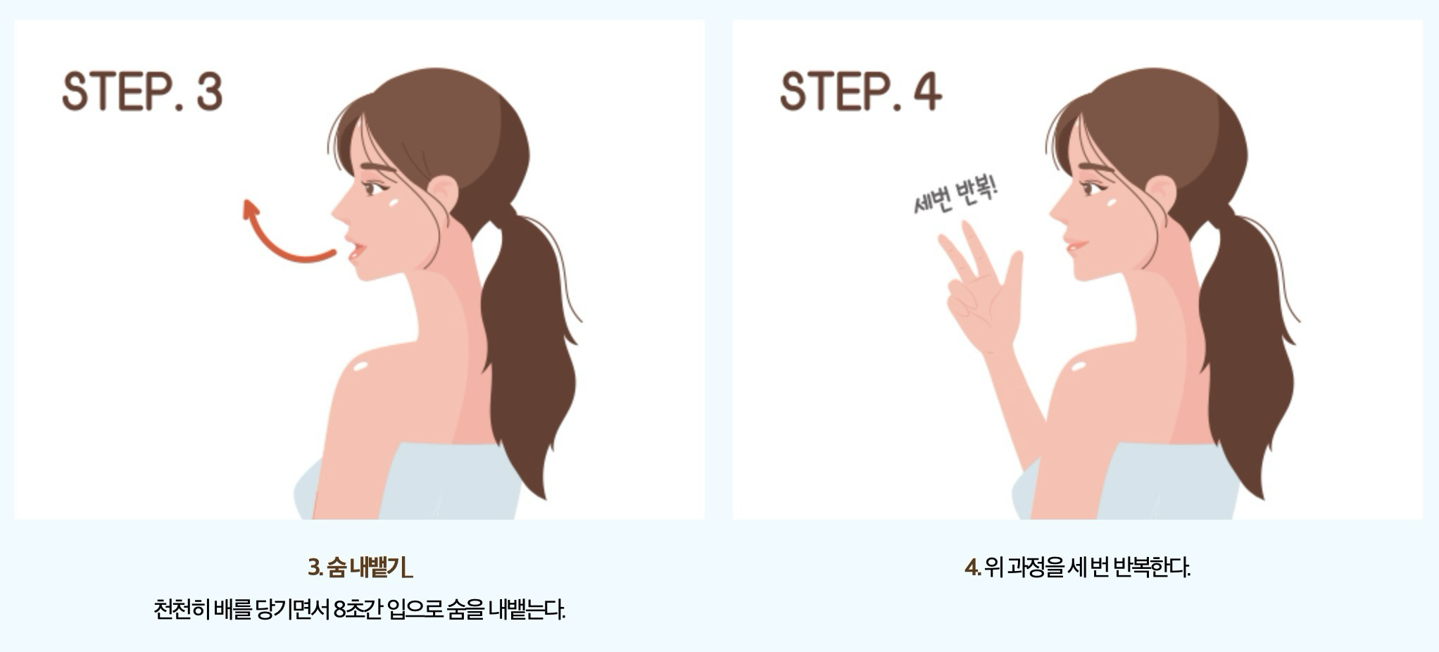 - 호흡: 가슴에 힘을 빼고 천천히 심호흡을 합니다.